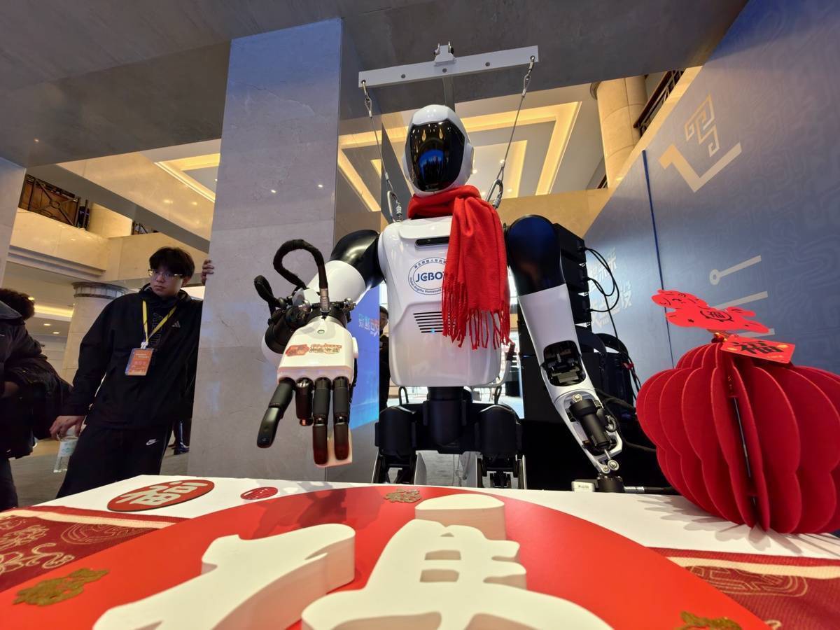 2026年2月24日,湖北“新春第一会”现场,多家企业的人形机器人再次亮相,挥毫书法、轻取豆腐、竞技足球、精准嗅辨等,技能全面升级。对比2025年,今年机器人更智能、更灵巧、更实用,湖北人形机器人的成长速度令人刮目相看。(湖北日报全媒记者陈少哲 张灿 喻煜)